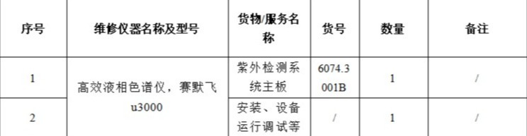 2.项目名称:高效液相色谱仪(赛默飞U3000)维修