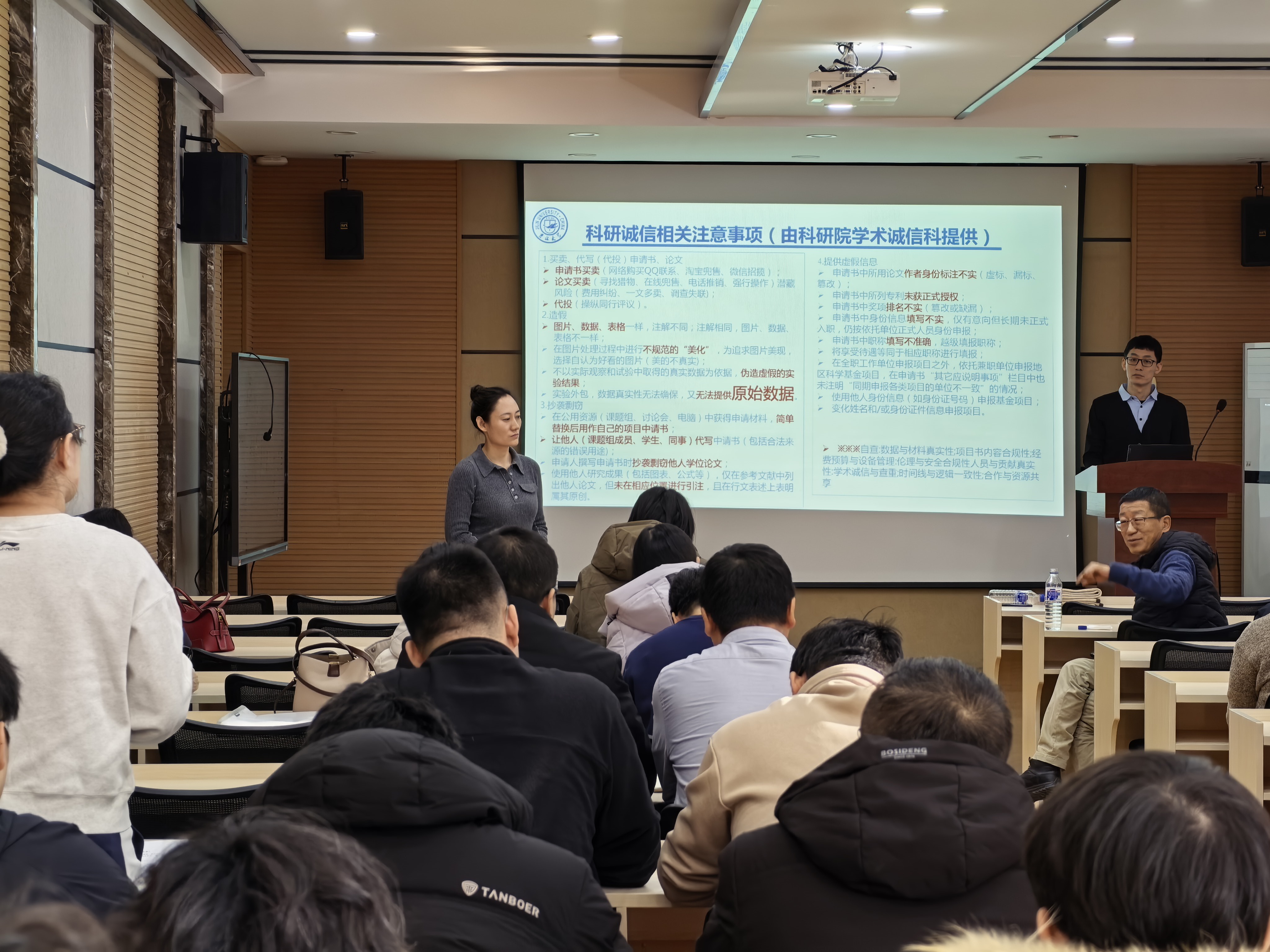 在互动交流环节,与会教师就交叉学科申报、青年人才项目选择、合作单位协议、预算编制细节等具体问题踊跃提问,朱明老师一一予以解答,现场气氛热烈。